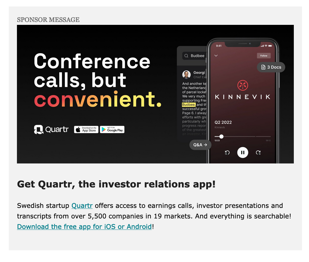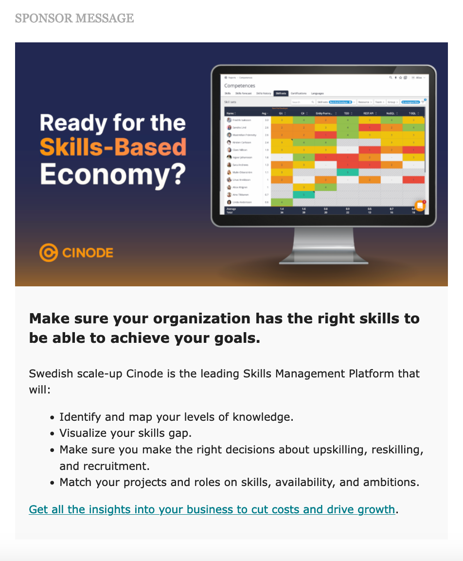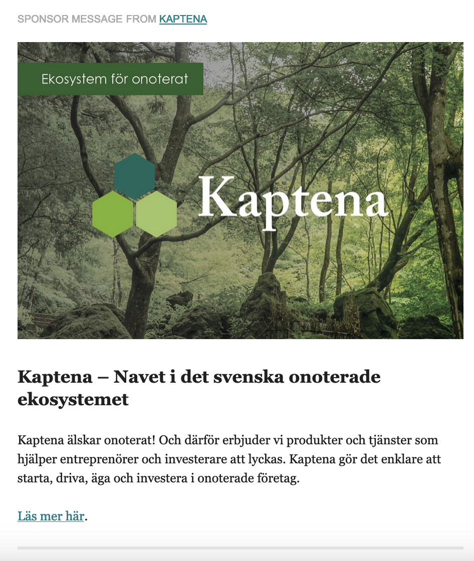 Examples of past sponsor ads on Swedish Tech Weekly