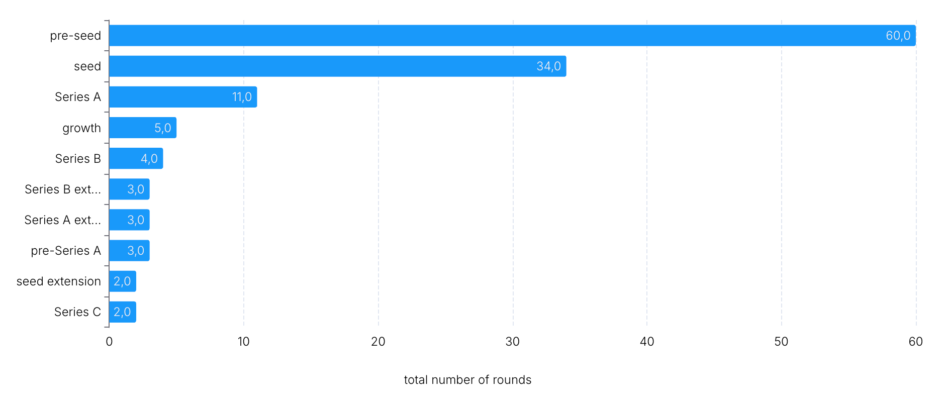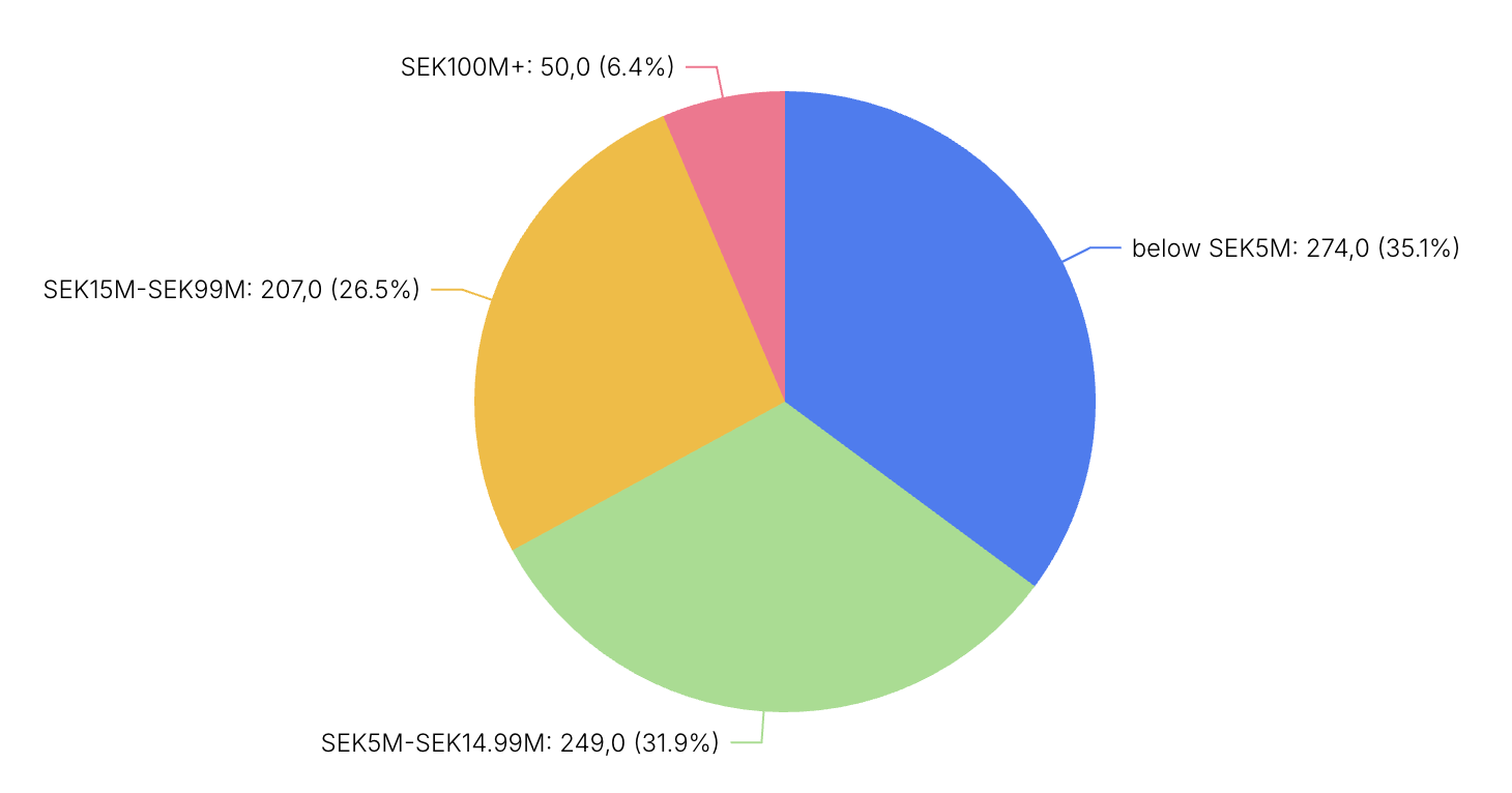 The following charts are based on the data I am tracking in the Startup Database by Swedish Tech News. The data includes selected unannounced rounds. PRO subscribers have access to regularly updated charts like these, throughout the year.